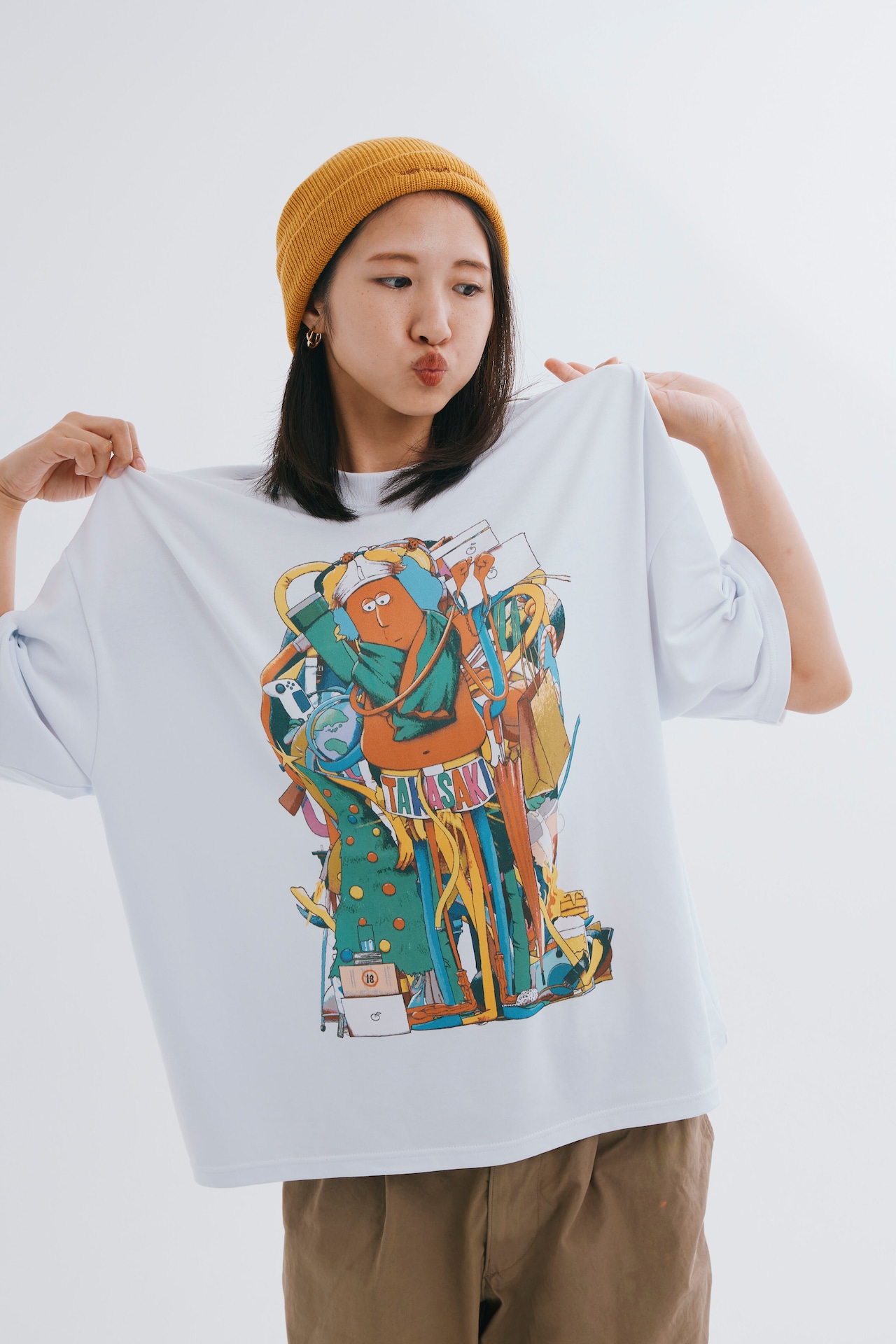 ワイドな身幅とやや長めの袖丈、落ち感のあるドロップショルダーの特徴的なシルエットでユニセックスなデザイン。