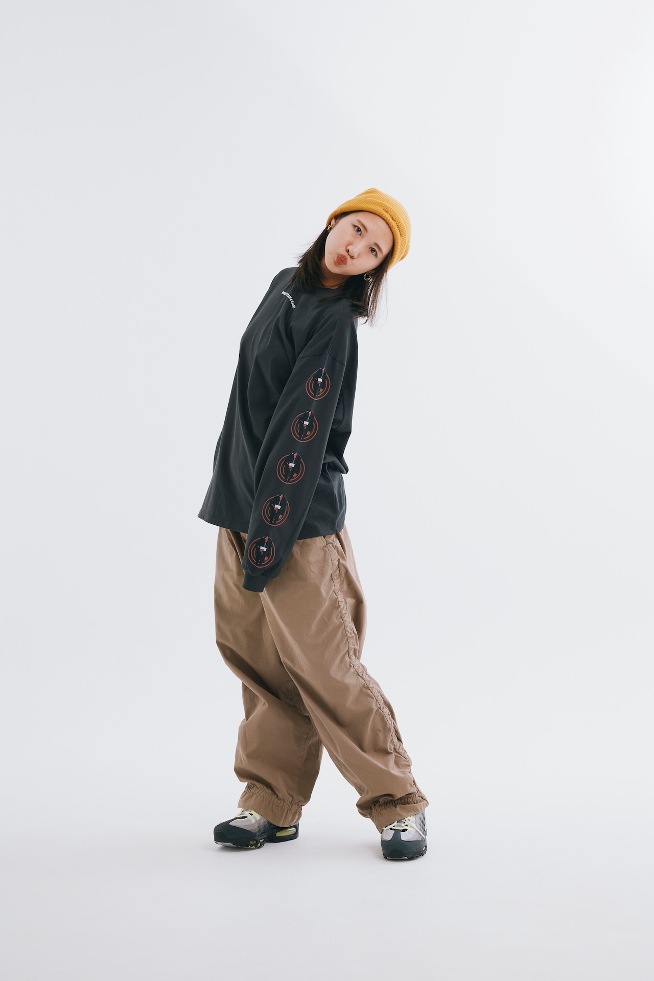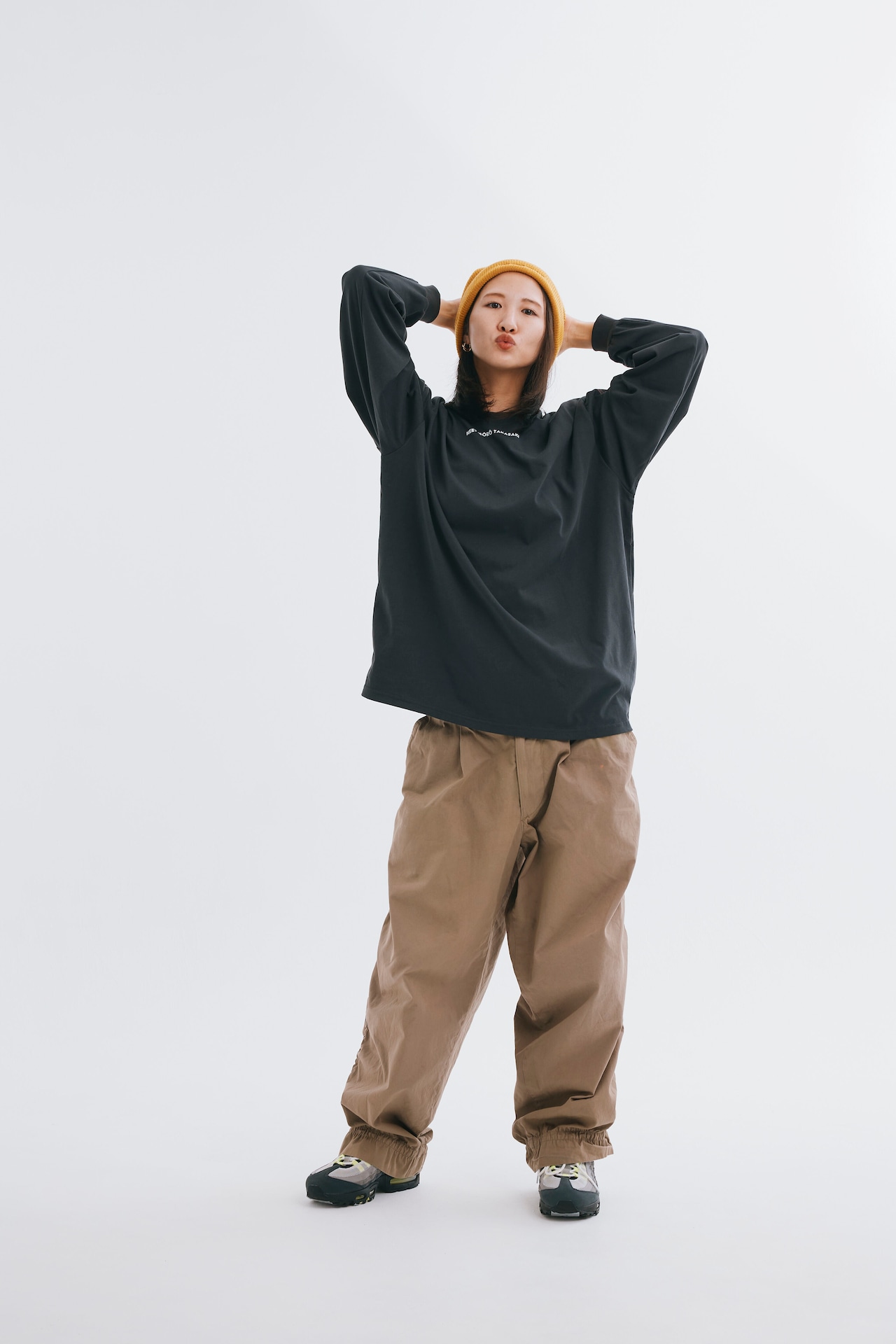 袖丈にゆとりを持たせ、リブでボリュームを収めることで、手元に自然なたまり、身幅と着丈もゆったりとしたリラックス感のあるシルエット。