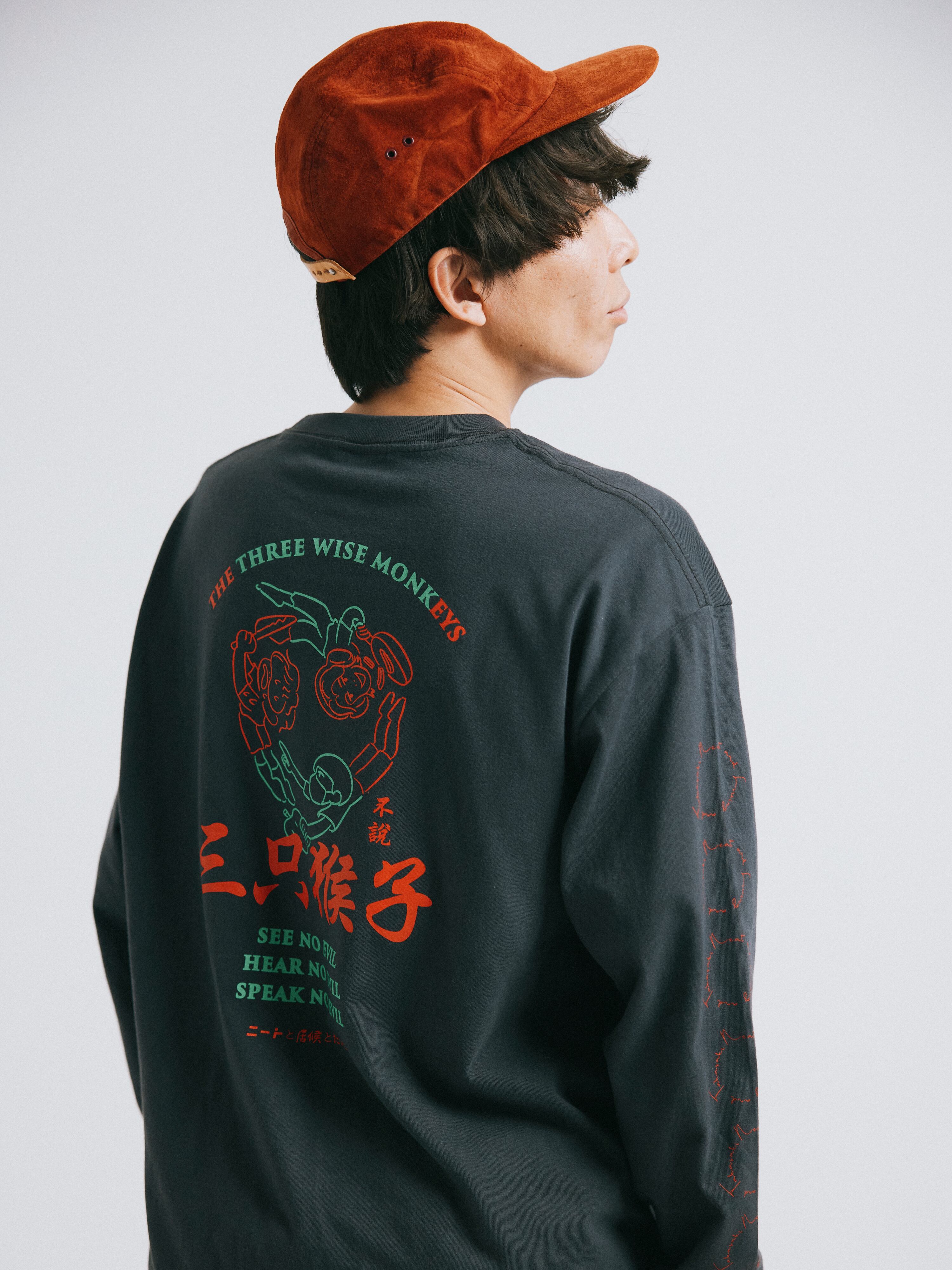三猿ロンT ヴィンテージブラック(TAX IN)